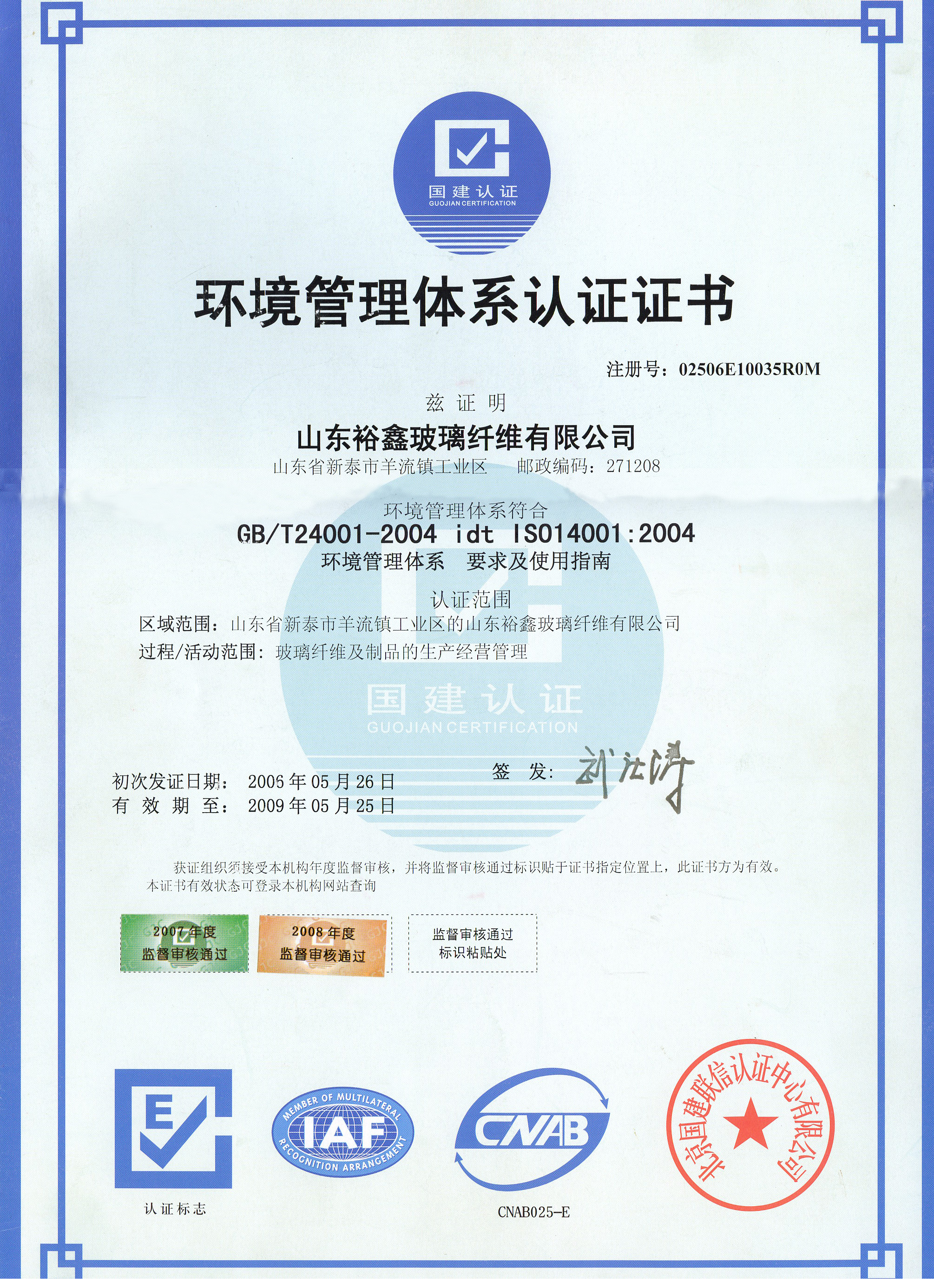 公司通过了ISO9001质量体系认证和ISO14001环境体系认证。“裕鑫”牌网格布和“裕鑫”牌土工格栅分别于2004年和2006年被评为“山东省名牌产品”;公司被中国玻璃纤维工业协会吸纳为理事单位,先后荣获“山东省高新技术企业”、“省级重合同守信用企业”,连续五年被泰安市政府评为“泰安优秀民营企业”、“泰安市民营科技企业”。2005年8月 “裕鑫”牌被认定为“山东省著名商标”,同时被山东省商标协会吸收为“山东省商标协会会员”。2006年公司被省经济贸易委员会认定为“省级企业技术中心”。
